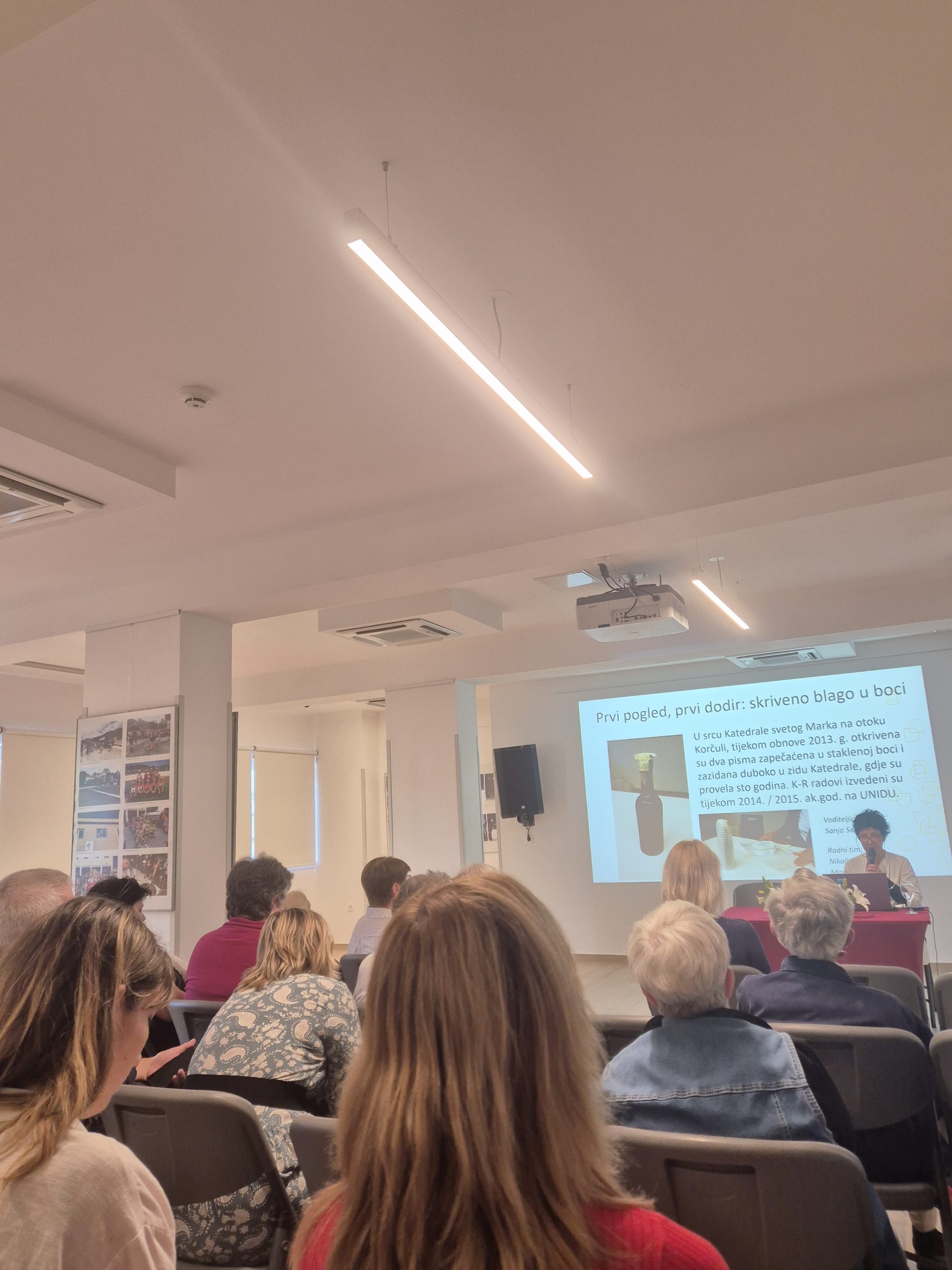 Obožavatelji kulturne baštine Grada Korčule su 23.5.2025. u Centru za kulturu Korčula pratili zanimljivo predavanje izv.prof.art. Sanje Serhatlić, konzervator-restaurator savjetnik, Sveučilište u Dubrovniku, o poruci u boci pronađenoj u korčulanskoj katedrali 2013. godine tijekom obnove.️